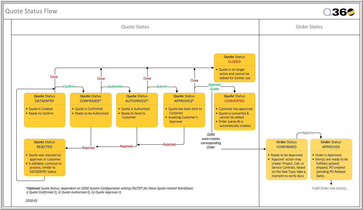 - The Quote will be sent through the AUTHORIZED, SUBMITTED, and APPROVED process, as illustrated on this Q360 Quote Status Flow